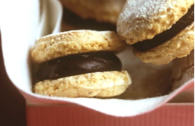 - Λιώνετε την κουβερτούρα μαζί με την κρέμα σε μπεν μαρί, μέχρι να ομοιογενοποιηθούν. Προσθέτετε το βούτυρο σε μικρά κομματάκια και ανακατεύετε καλά. Ενώνετε δύο δύο τα μπισκότα, βάζοντας ανάμεσα σοκολατένια κρέμα. Τα σερβίρετε αμέσως.