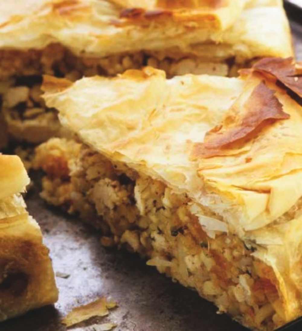 - Φύλλα κρούστας για πίτες: 10-11 φύλλα (1 συσκευασία 450 γρ.). -ή σπιτικό, σύμφωνα με τις οδηγίες της βασικής συνταγής*