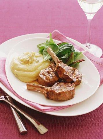 - Προσθέτετε το μισό λάδι, τη μουστάρδα και το κρασί και τις σκεπάζετε για 2 ώρες γυρίζοντάς τις συχνά. Ψήνετε τις μπριζόλες σε ταψάκι μαζί με το λάδι τους ή στη σχάρα αλείφοντας τις με το λάδι τους. Στο μεταξύ αναμειγνύετε τον πουρέ με το σκόρδο, το τυρί και το αλατοπίπερο. Σερβίρετε τις μπριζόλες μαζί με τον πουρέ.