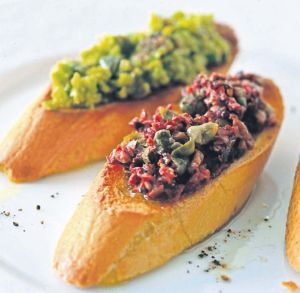 - Προσθέτετε κατά μικρές ποσότητες το λάδι και το χυμό λεμονιού και χτυπάτε στο μπλέντερ για 1’ ακόμη. Αφήνετε τον πολτό στο ψυγείο για 2-3 ώρες και μετά τον αλείφετε πάνω στις φέτες της μπαγκέτας, αφού πρώτα τις φρυγανίσετε.