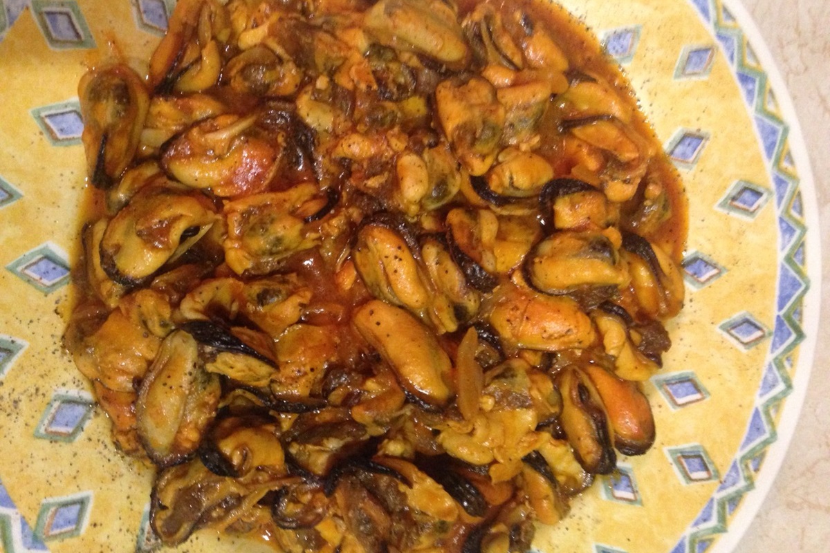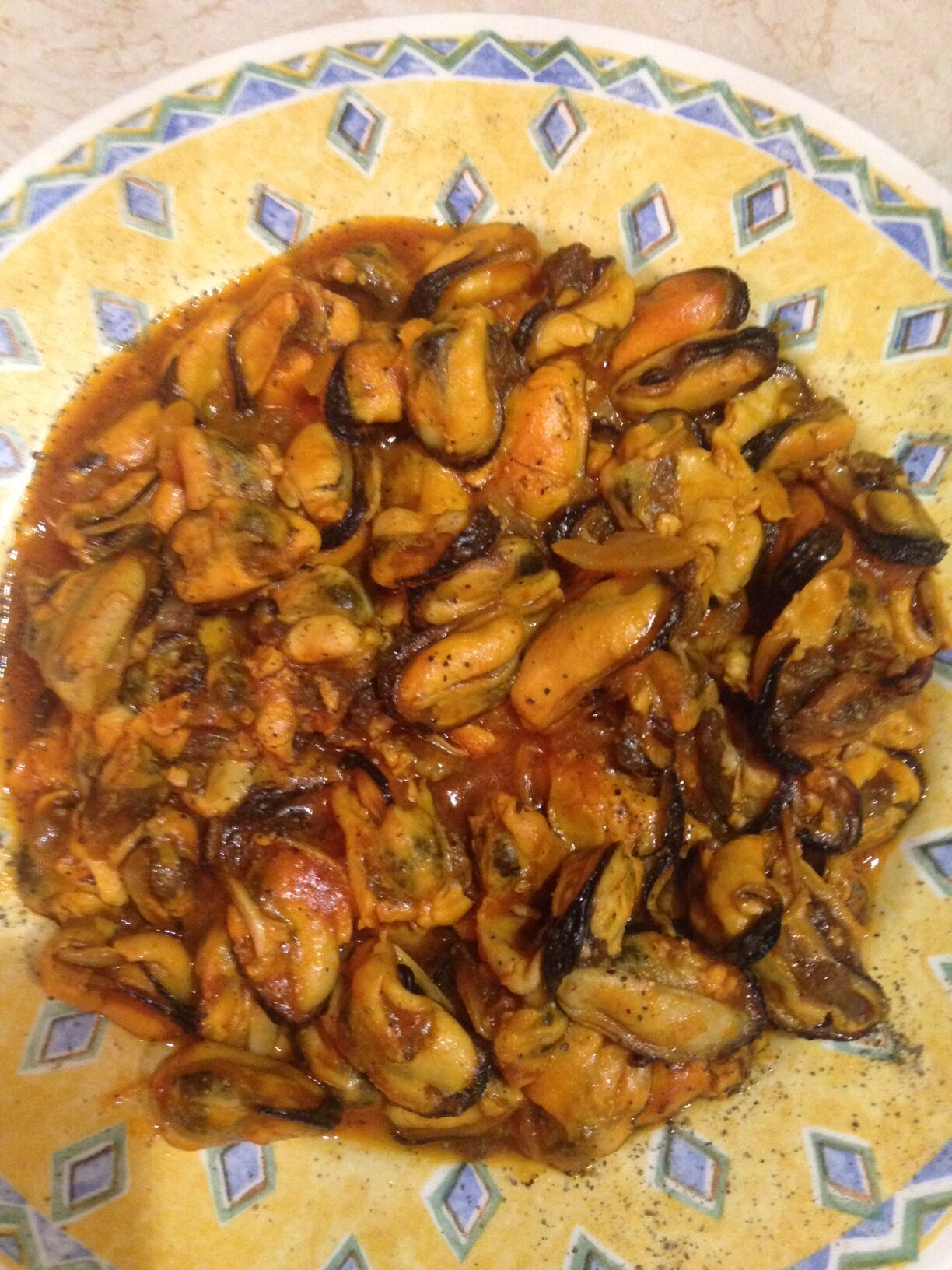 - Αχνίζετε τα μυδιά και χρησιμοποιείτε μόνο όσα έχουν ανοίξει. Τα καθαρίζετε από το κέλυφος και τα τσιγαρίζετε σε μια κατσαρόλα μαζί με το κρεμμύδι και το ελαιόλαδο.