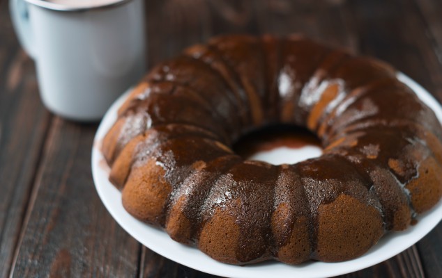- Λιώνετε τη σοκολάτα σε μπεν μαρι. Προσθέτετε το λάδι και ανακατεύτε. Περιχύνετε το κέικ με τη σοκολάτα και σερβίρετε.