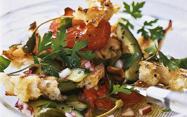 Συνταγή για ντοματοσαλάτα με τραγανό ψωμί
