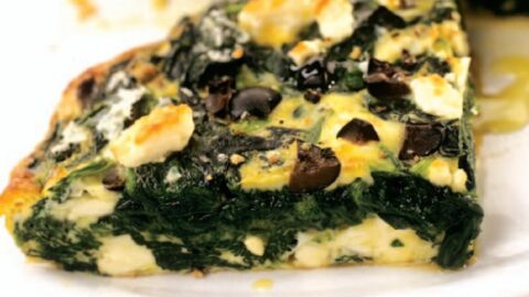 Συνταγή για χορταστική ομελέτα με σπανάκι, ελιές και τυριά ανάμεικτα.