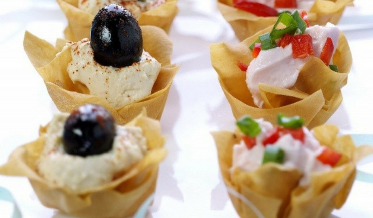 Αυτές οι τραγανές φωλιές φτιαγμένες από φύλλο κρούστας και γεμισμένες με λευκά τυριά και ελιές είναι ιδανικές μπουκίτσες για το κρασί.