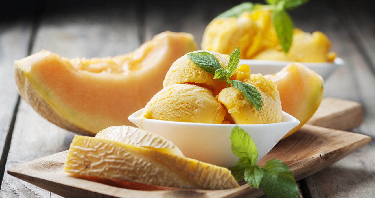 Συνταγή για πλούσιο παγωτό πεπόνι με κρέμα και βανίλια. Η συνταγή χρειάζεται ώριμο, ευωδιαστό πεπόνι.