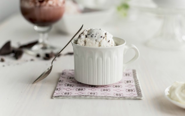 - Χτυπάτε την κρέμα γάλακτος μέχρι να γίνει σαντιγί. Την ανακατεύετε με τη δροσερή κρέμα αυγών-γάλακτος και βάζετε το μείγμα σε δοχείο κατάλληλο για παγωτό. Καταψύχετε για 2 ώρες ή μέχρι να μισοπαγώσει. Βγάζετε το παγωτό από την κατάψυξη και το χτυπάτε με το μίξερ για 30’’. Επαναλαμβάνετε τη διαδικασία κατάψυξης και χτυπήματος με μίξερ άλλη μια φορά και προσθέτετε τη σοκολάτα. Τέλος αφήνετε το παγωτό να παγώσει για άλλες 3 ώρες μέχρι να σταθεροποιηθεί πλήρως.