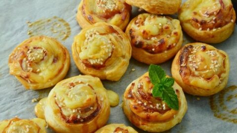 Πανεύκολα πιτσάκια-ρολό με σφολιάτα, ζαμπόν και τυρί του τοστ