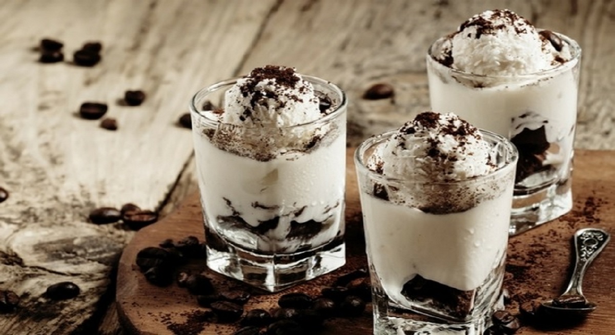 - Βάζετε σε κάθε ποτήρι από μια μπάλα παγωτό ή σαντιγί, πασπαλίζετε με κακάκο και σερβίρετε.