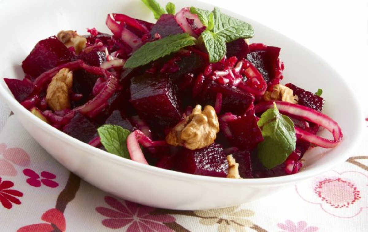 - Προσθέτετε το κρεμμύδι, τα καρύδια και τον υπόλοιπο δυόσμο, ανακατεύετε καλά και σερβίρετε.