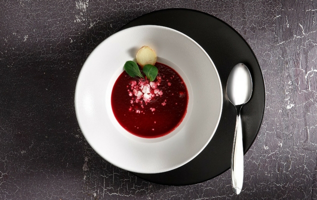 Neofusion της Rak -η πορσελάνη σήμερα. To εξαιρετικό σερβίτσιο στο οποίο σερβιρίστηκε η παντζαρόσουπα είναι το Neofusion της Rak, μια ολοκαίνουρια σειρά που διαθέτουν κατ' αποκλειστικότητα τα καταστήματα Παρουσίαση. Διατίθεται σε 4 γήινα χρώματα και συνδυάζει την αντοχή της πορσελάνης με το ύφος του κεραμικού, χάρη στο εξαιρετικά ισχυρό, χειροποίητο, μη πορώδες υάλωμα που φέρει και δίνει ματ αποτέλεσμα. Το Neofusion, αναδεικνύει έντονα την αντίθεση μεταξύ μιας «ακατέργαστης» επιφάνειας και ενός εκλεπτυσμένου πιάτου ή επιδορπίου, δημιουργώντας μία εντυπωσιακή γαστρονομική εμπειρία.