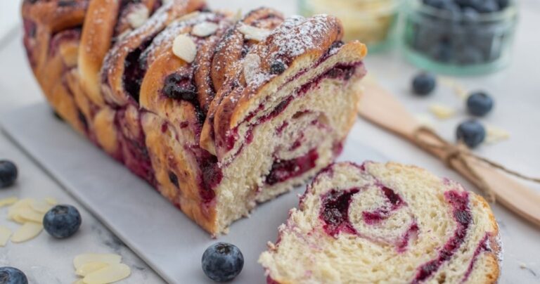 - Ανοίγετε τη ζύμη με τον πλάστη σε φύλλο διαστάσεων 25Χ30εκ. Αλείφετε με τη μαρμελάδα όλη την επιφάνειά του και το τυλίγετε σε ρολό. Κόβετε το ρολό κατά μήκος στη μέση και -κρατώντας την κομμένη επιφάνειά τους προ τα πάνω- πλέκετε τα δύο μέρη της ζύμης σαν κοτσίδα.