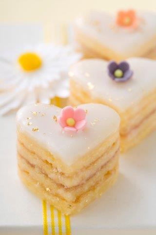 - Κόβετε με κουπ πατ σε σχήμα καρδιάς. Δημιουργείτε όσα περισσότερα στρώματα μπορείτε μέσα στο κουπ πατ από παντεσπάνι και μαρμελάδα ενώ σιροπιάζετε ελάχιστα το κάθε κομμάτι παντεσπάνι ανά στρώση.