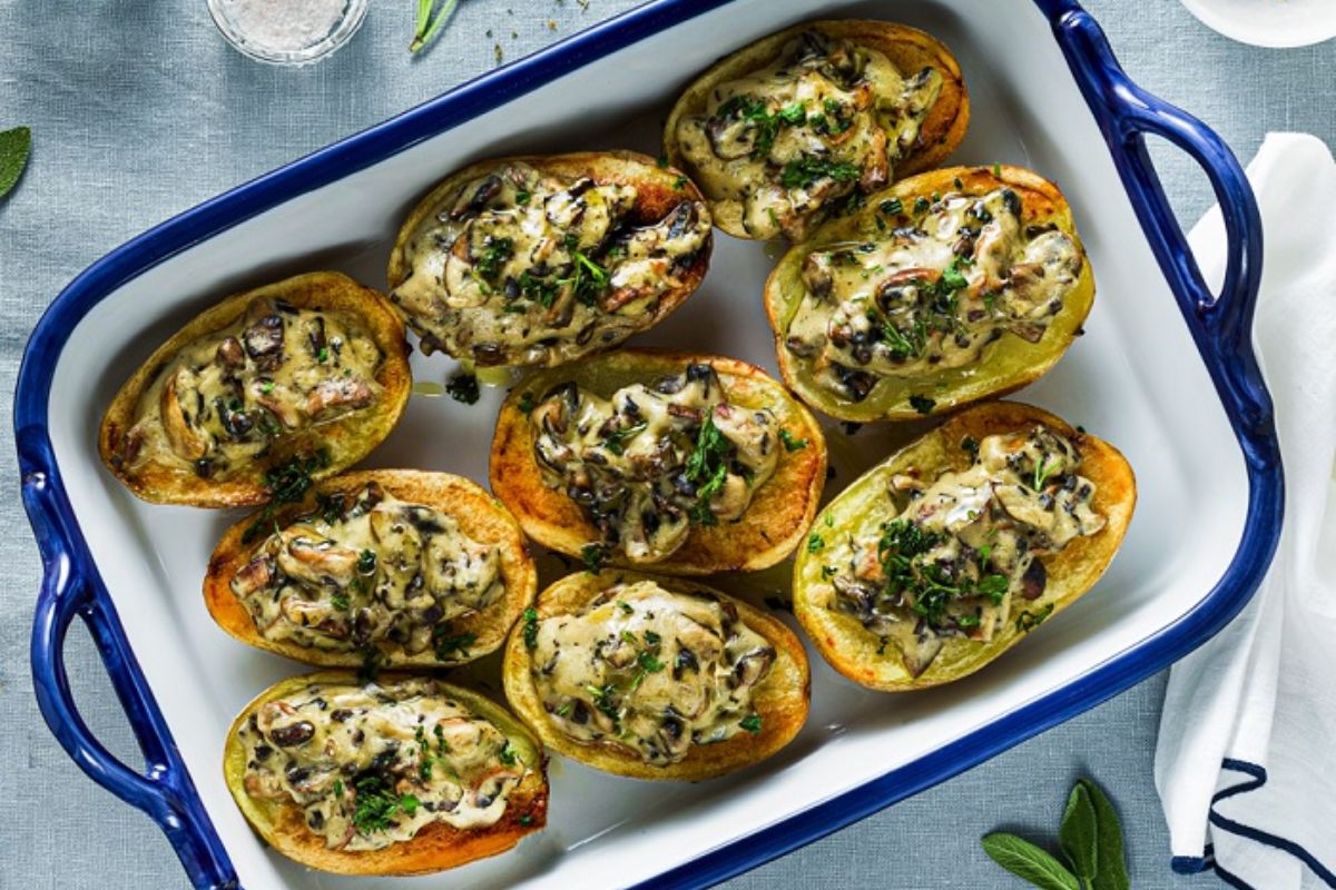 Συνταγή για γεμιστές πατάτες με μανιτάρια και τυριά, ιδανικές για ορεκτικό ή συνοδευτικό σε κυρίως πιάτο. Μπορείτε να τις απολαύσετε και ως ελαφρύ κυρίως συνοδευμένες με ποικιλία φρέσκων λαχανικών σε μια πλούσια σαλάτα.