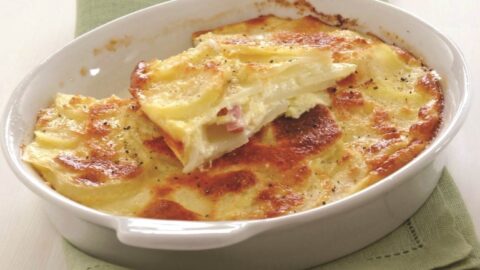 Πατάτες ογκρατέν με κεφαλογραβιέρα, κασέρι και ζαμπόν
