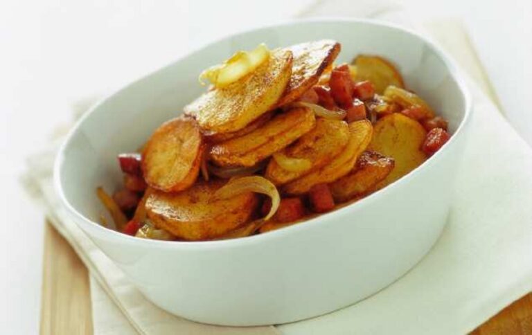 Συνταγή για πατάτες τηγανητές που κλέβουν την παράσταση. Λουκάνικα ή μπέικον και κρεμμύδι συμβάλλουν ιδιαίτερα για μια άπαιχτη χειμωνιατικη γεύση.