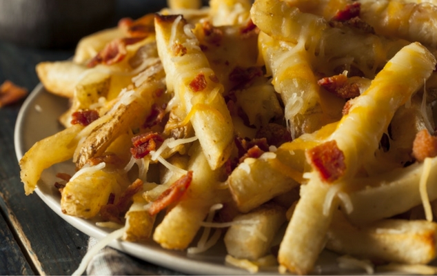 - Κόβετε το μπέικον σε τετράγωνα κομματάκια και το σοτάρετε σε αντικολλητικό τηγάνι μέχρι να γίνει τραγανό. Βγάζετε τις πατάτες, τις αφήνετε να στραγγίξουν για λίγο σε απορροφητικό χαρτί, τους προσθέτετε το μπέικον και κεφαλοτύρι και σερβίρετε.