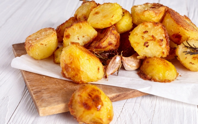 - Βγάζετε τις πατάτες απ' το φούρνο και, μόλις κρυώσουν λίγο, αφαιρείτε τη φλούδα και τις κόβετε στη μέση ή σε ροδέλες, ανάλογα με το μέγεθός τους.