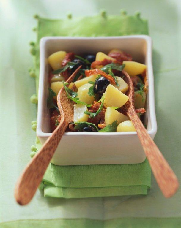 Συνταγή για πατατοσαλάτα με ελιές και λιαστές ντομάτες