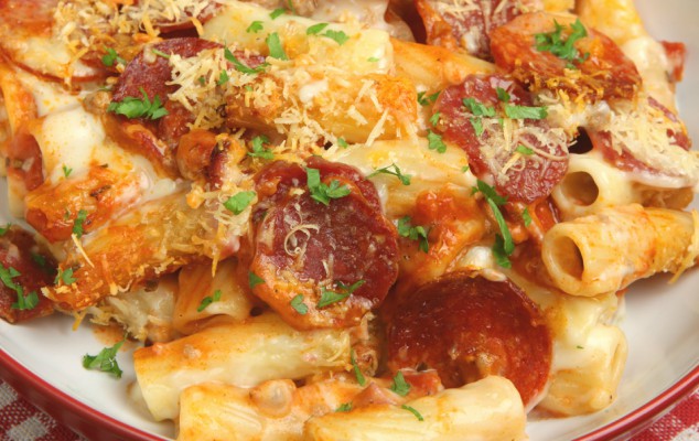 - Προθερμαίνετε το φούρνο στους 180 C. Πασπαλίζετε με λίγο τυρί και ψήνετε για 15'. Σερβίρετε τα ζυμαρικά ζεστά κι αν θέλετε πασπαλίζετε με λίγο μαϊντανό ψιλοκομμένο.