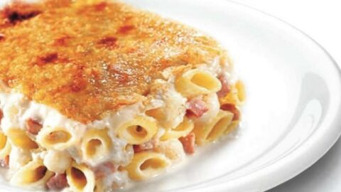Συνταγή για πένες με ζαμπόν, κουνουπίδι και μετσοβόνε σε βελούδινη μπεσαμέλ