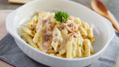 Συνταγή για πένες με μπέικον και κρέμα γάλακτος