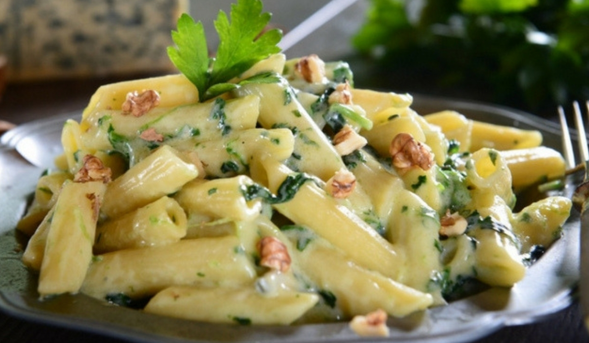 - Στο μεταξύ βράζετε τις πένες σύμφωνα με τις οδηγίες της συσκευασίας τους και τις στραγγίζετε καλά. Τις αναμειγνύετε με τη σάλτσα του μπλε τυριού, προσθέτετε και τα καρύδια, ανακατεύετε και σερβίρετε.