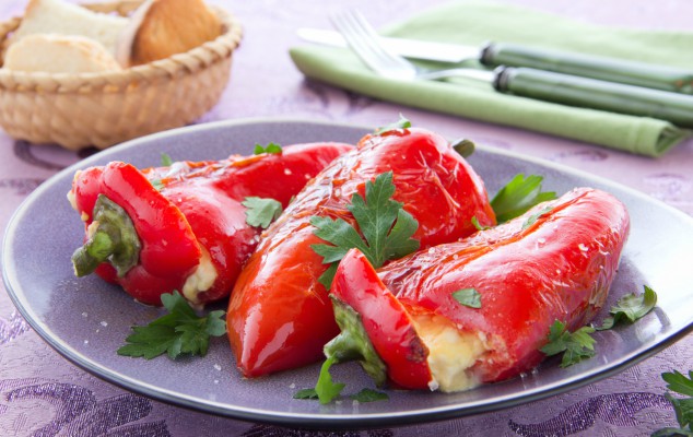 - Ψήνετε σε προθερμασμένο φούρνο στους 180°C για 20'-25', έως ότου μαλακώσουν και πάρουν χρώμα οι πιπεριές.