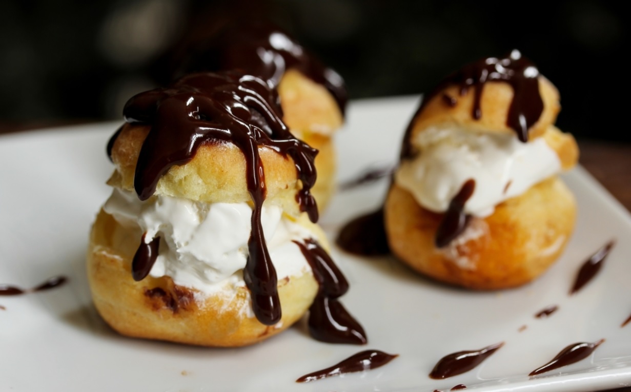 - Για τη σάλτσα σοκολάτας βράζετε στη φωτιά το γάλα με την κρέμα γάλακτος. Μόλις αρχίσει να φουσκώνει ρίχνετε τη σοκολάτα και ανακατεύετε συνεχώς μέχρι να λιώσει. Αποσύρετε από την εστία την κατσαρόλα, προσθέτετε το βούτυρο ανακατεύοντας και σερβίρετε τα σου περιχυμένα με τη σάλτσα σοκολάτας.