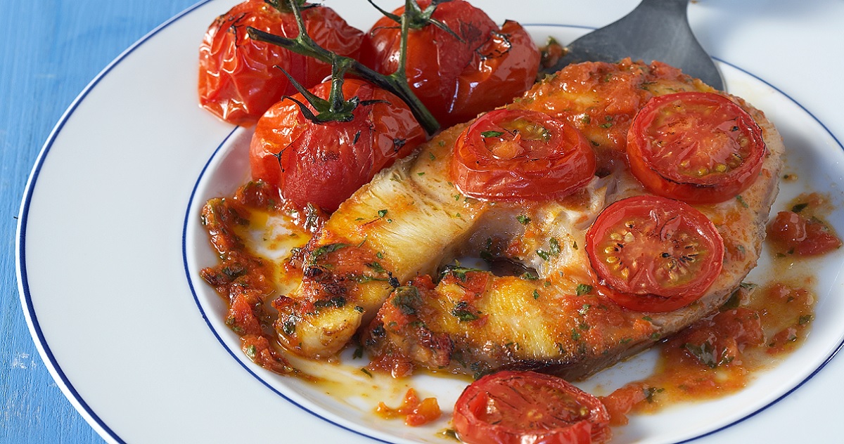 - Περιχύνετε με αυτή τη σάλτσα ντομάτας τις φέτες ψαριού και ψήνετε στους 170 °C για 50 λεπτά περίπου, περιχύνοντάς τα πού και πού με το ζουμί τους.