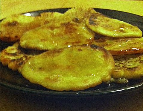 - Βάζετε το λάδι σε αντικολλητικό τηγάνι να κάψει και ρίχνετε κουταλιά κουταλιά το χυλό μέσα. Μόλις πήξουν και ροδίσουν από τη μια μεριά, γυρνάτε τις τηγανίτες κι απ' την άλλη. Τις βγάζετε, τις αφήνετε -αν θέλετε- σε απορροφητικό χαρτί να στραγγίσουν λίγο, τις περιχύνετε με μέλι, πασπαλίζετε με κανέλα και έτοιμες! Με τις ποσότητες αυτές βγαίνουν περίπου 15 κουταλιές (τηγανίτες). Συνταγή Θάνος Κ.