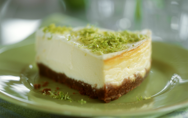 - Αδειάζετε το μείγμα του τυριού και των άλλων υλικών πάνω στην βάση των μπισκότων και ψήνετε για 1 ώρα. Αφήνετε να κρυώσει, ξεφορμάρετε το cheesecake και το διακοσμείτε με το ξύσμα λάιμ αφού το ανακατέψετε με τη ζάχαρη.