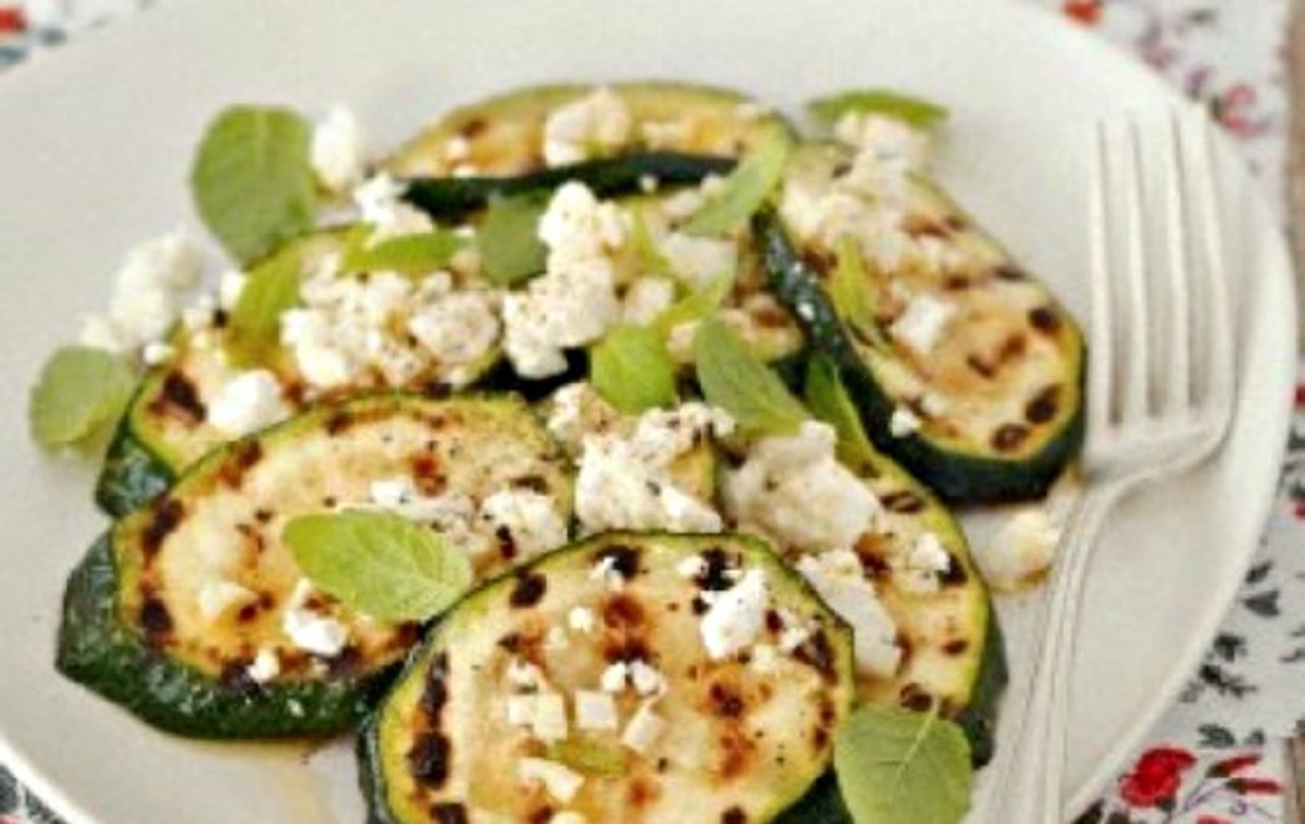 - Αλείφετε τη σχάρα με ελαιόλαδο και ψήνετε τα κολοκυθάκια μέχρι να πάρουν χρώμα και από τις δυο πλευρές.