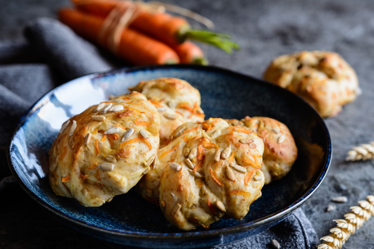Συνταγή για απίθανα ψωμάκια με καρότο και ηλιόσπορους. Η ζύμη αυτή είναι αρκετά κολλώδης ωμή, αλλά έχει απίθανη κρούστα και υφή όταν ψήνεται και εικόνα χειροποίητου.