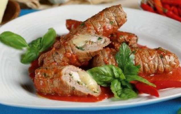 - Αφήνετε τη σάλτσα να σιγοβράσει. Βάζετε τα ρολάκια σε ταψί και τα περιχύνετε με τη σάλτσα. Ψήνετε στο φούρνο στους 180° C για 1 ώρα 10΄, γυρίζοντας τα ρολάκια συχνά μέσα στη σάλτσα τους. 5΄ προτού τα βγάλετε από το φούρνο ρίχνετε στη σάλτσα και ανακατεύετε. Σερβίρετε τα ρολά με τη σάλτσα τους.