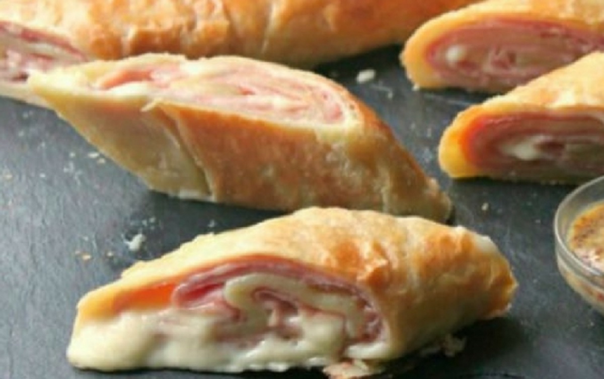 - Αλείφετε τη σφολιάτα ή τα σφολιατάκια με λίγο βούτυρο και απλώνετε το ζαμπόν και το τυρί (στα σφολιατάκια βάζετε από μία φετα αλλαντικού και τυριού). Πασπαλίζετε με λίγο πιπέρι.