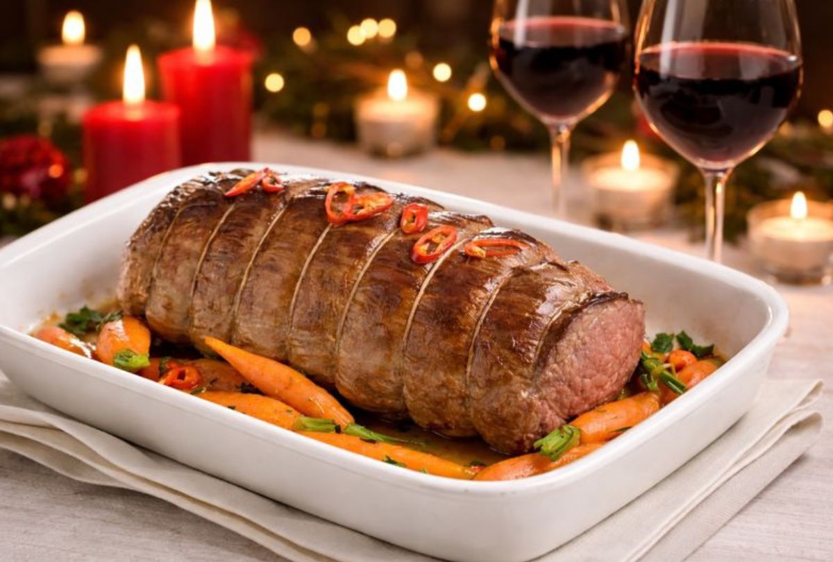 Συνταγή για ρολό μοσχαρίσιου φιλέτου με καρότα και κονιάκ, ιδανική για το τραπέζι της Πρωτοχρονιάς