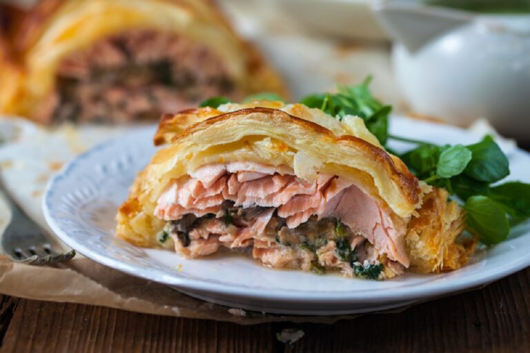 Μπορείτε να τυλίξετε το σολομό και σε έτοιμη σφολιάτα του εμπορίου.