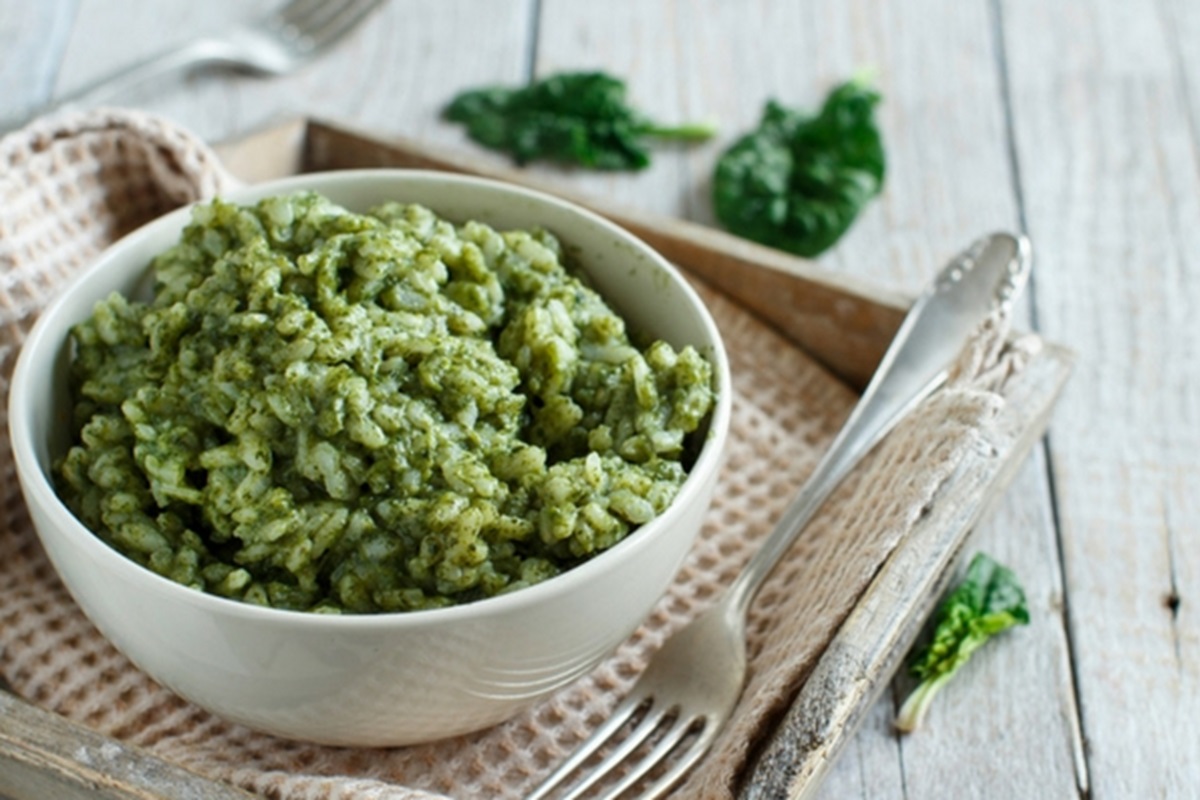 - Σε αντικολλητική κατσαρόλα ζεσταίνετε το βούτυρο, σε χαμηλή φωτιά και βάζετε τα κρεμμύδια. Τα σοτάρετε μέχρι να μαλακώσουν. Προσθέτετε το ρύζι και ανακατεύετε μέχρι να γίνει διαφανές.