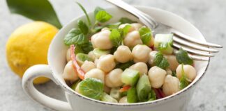 Μια έξοχη διατροφικά και γευστικά ιδέα που προμηθεύει στον οργανισμό με πολύτιμα στοιχεία. Η συνταγή για ρεβιθοσαλάτα με ντρέσινγκ από ταχίνι και λεμόνι είναι του σεφ Κωνσταντίνου Κωβαίου.