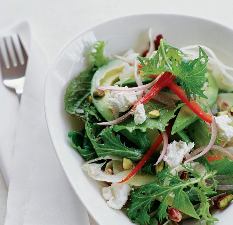 Δεν πρόκειται για μια απλή σαλάτα, αλλά για ένα γενναιόδωρο πιάτο, όπου τα σαλατικά και το βουτυράτο αβοκάντο ενισχύονται από μια πλού- σια, λευκή σάλτσα. Τα κρασιά που θα επιλέξουμε θα πρέπει να πληρούν τις προϋποθέσεις της οξύτητας και της πληθωρικότητας. Πλαδαρά και άνευρα κρασιά δεν θα αντέξουν δίπλα σε αυτή τη σαλάτα. Αναζητήστε λοιπόν ένα φρέσκο Sauvignon, ένα Νυχτέρι ή ένα κρητικό Βιδιανό.