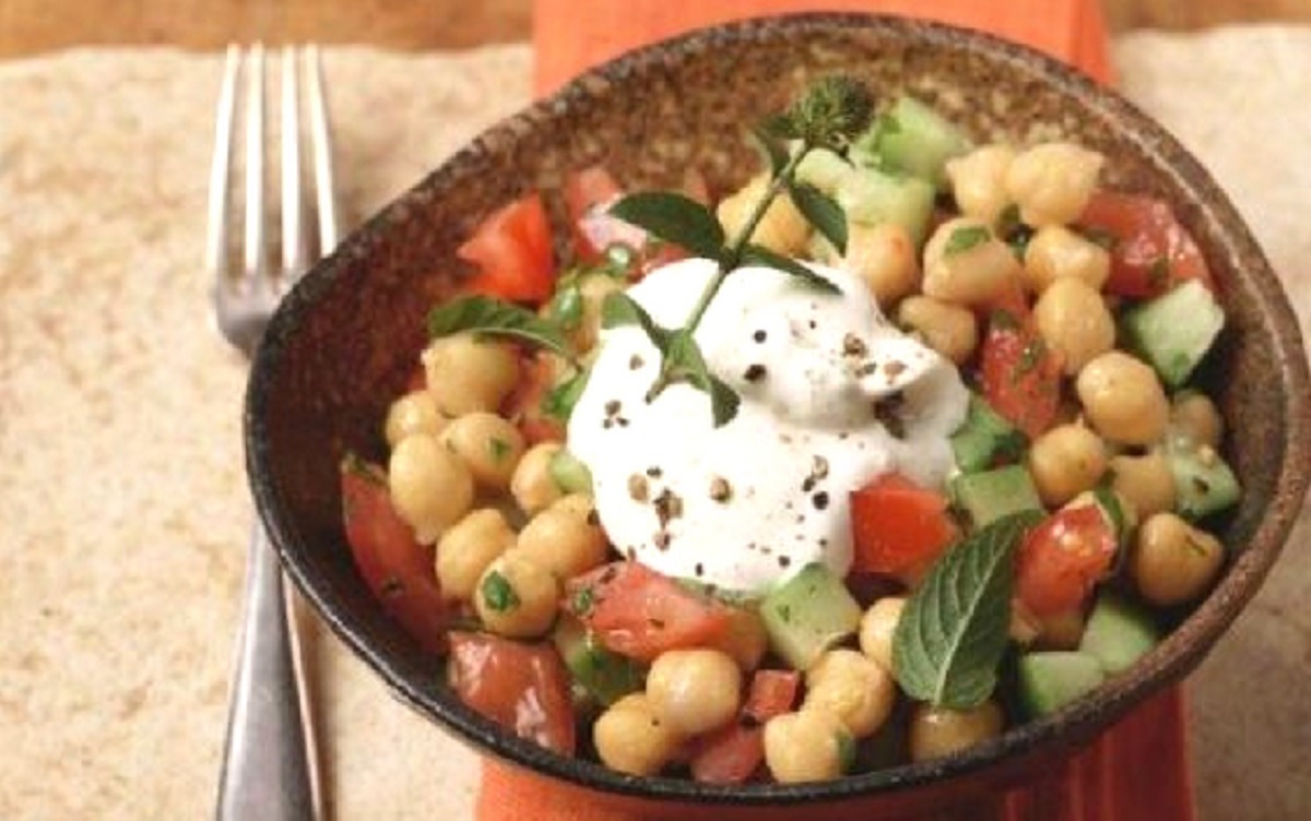 - Σερβίρετε τα ρεβίθια σε βαθιά πιάτα, αφού αφαιρέσετε τη δάφνη. Ανακατεύετε το υπόλοιπο λάδι με τις υπόλοιπες ψιλοκομμένες ντομάτες, τα αγγουράκια, το σκόρδο, το μαϊντανό και αλατοπίπερο και περιχύνετε με αυτό το μείγμα τα ρεβίθια.