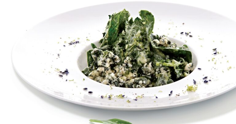 Μια πλούσια σαλάτα που γεμίζει πληθωρικά το στόμα, με τη βουτυράτη υφή του αβοκάντο και την πικάντικη, βελούδινη γεύση του blue cheese. Ωστόσο, εξαιτίας του τυριού και λόγω του έντονου αρωματικού χαρακτήρα που προσδίδει στο πιάτο θα πρέπει να διαλέξουμε ένα λευκό κρασί με οξύτητα και έντονα αρώματα. Αναζητήστε μια φρέσκια, αφρώδη Ντεμπίνα.