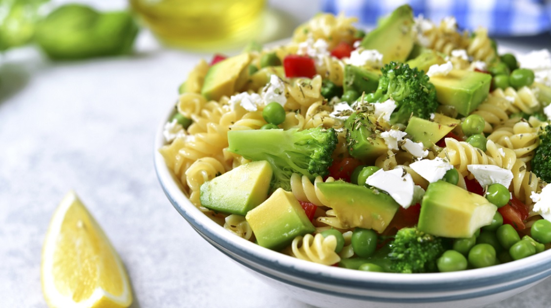 - Προσθέτετε στα όχι ζεστά ζυμαρικά το μπρόκολο, τον αρακά, την ντομάτα, το αβοκάντο και τη φέτα κομματιασμένη στα ζυμαρικά και ανακατεύετε.