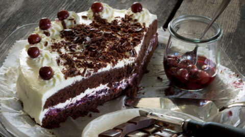 Σοκολατένια τούρτα με κεράσια κομπόστα (Μπλακ Φόρεστ)