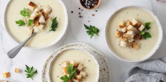Συνταγή για σούπα από κουνουπίδι. Το προψημένο για λίγο στο φούρνο κουνουπίδι προσθέτει περισσότερη γεύση. Αν θέλετε να φτιάξετε σπιτικά κρουτόν για το γαρνίρισμα δείτε τη συνταγή εδώ.