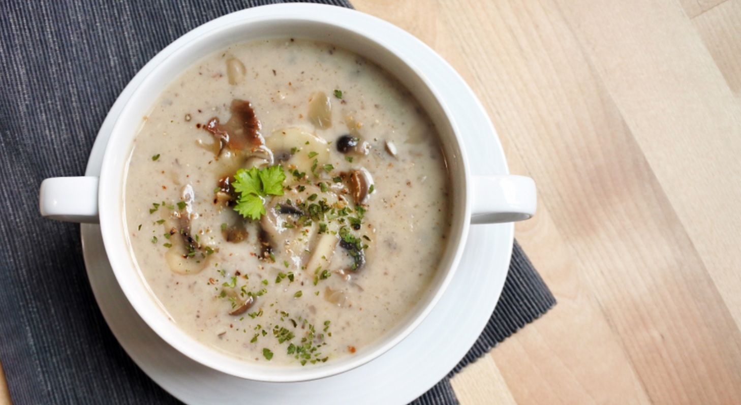- Ζεσταίνετε το υπόλοιπο βούτυρο και προσθέτετε το αλεύρι. Όταν ξανθύνει, το ρίχνετε κι αυτό στη σούπα μαζί με το μαϊντανό και ανακατεύετε καλά. Σιγοβράζετε 5' και σερβίρετε, γαρνίροντας, αν θέλετε με λίγα σοταρισμένα μανιτάρια.