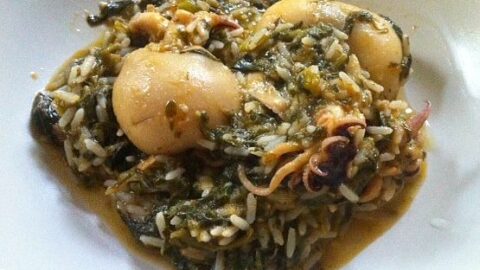 Συνταγή για σουπιές με χόρτα και ρυζάκι