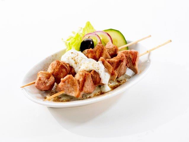 - Τα τοποθετείτε σε ταψάκι αλειμμένο με λίγο λάδι και τα ψήνετε στους 200ο C μέχρι να ροδίσουν απ’ όλες τις πλευρές. Στο μεταξύ ετοιμάζετε τη σάλτσα ανακατεύοντας τη μαγιονέζα, το γιαούρτι και την υπόλοιπη μουστάρδα. Συνοδεύετε τα σουβλάκια με τη σάλτσα τους και γαρνίρετε με φρέσκα κρεμμυδάκια, πάπρικα ή κάρι.