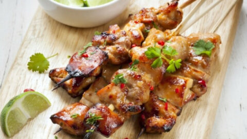 Σουβλάκια κοτόπουλου μαριναρισμένα σε μουστάρδα και λάιμ